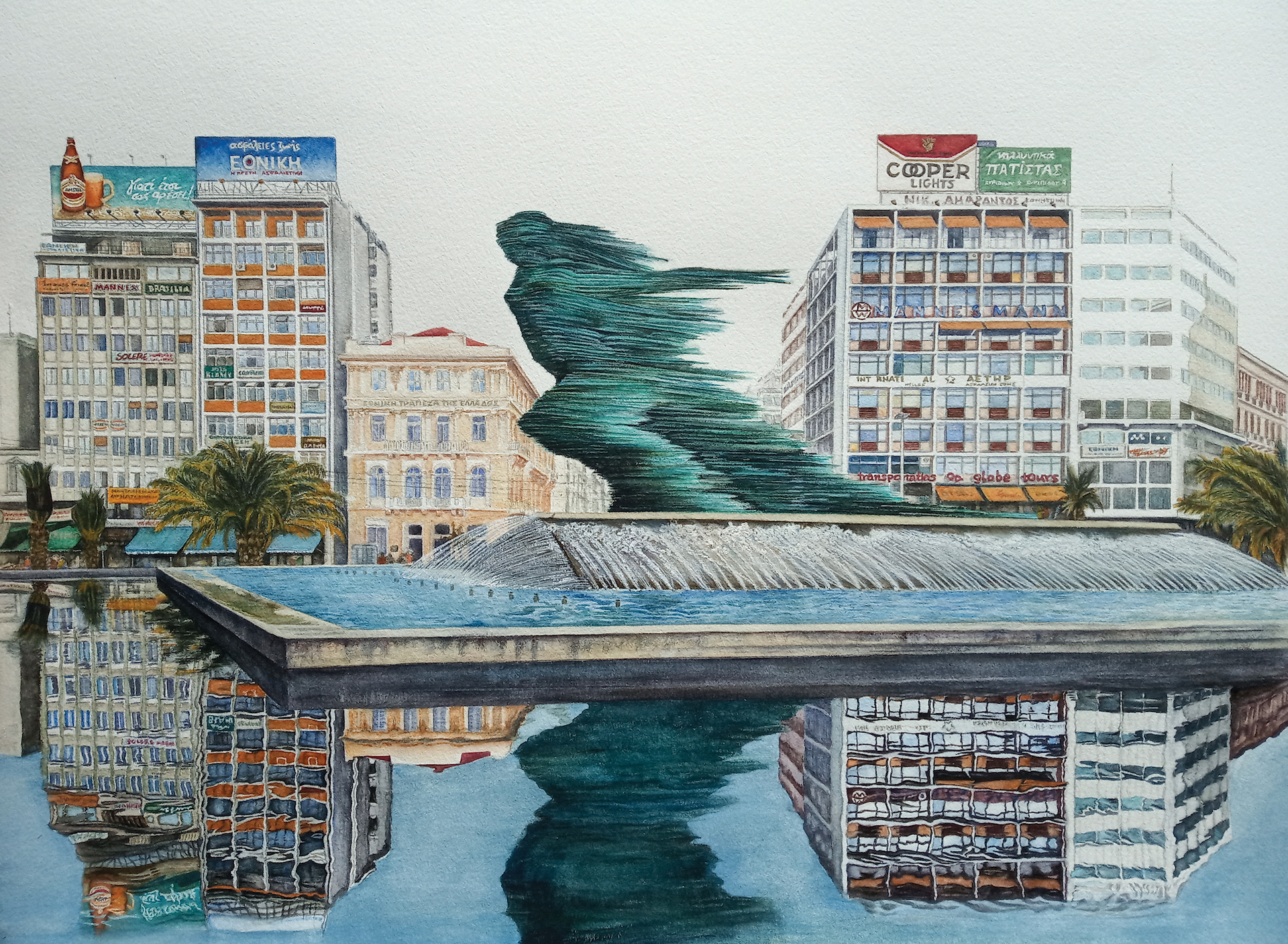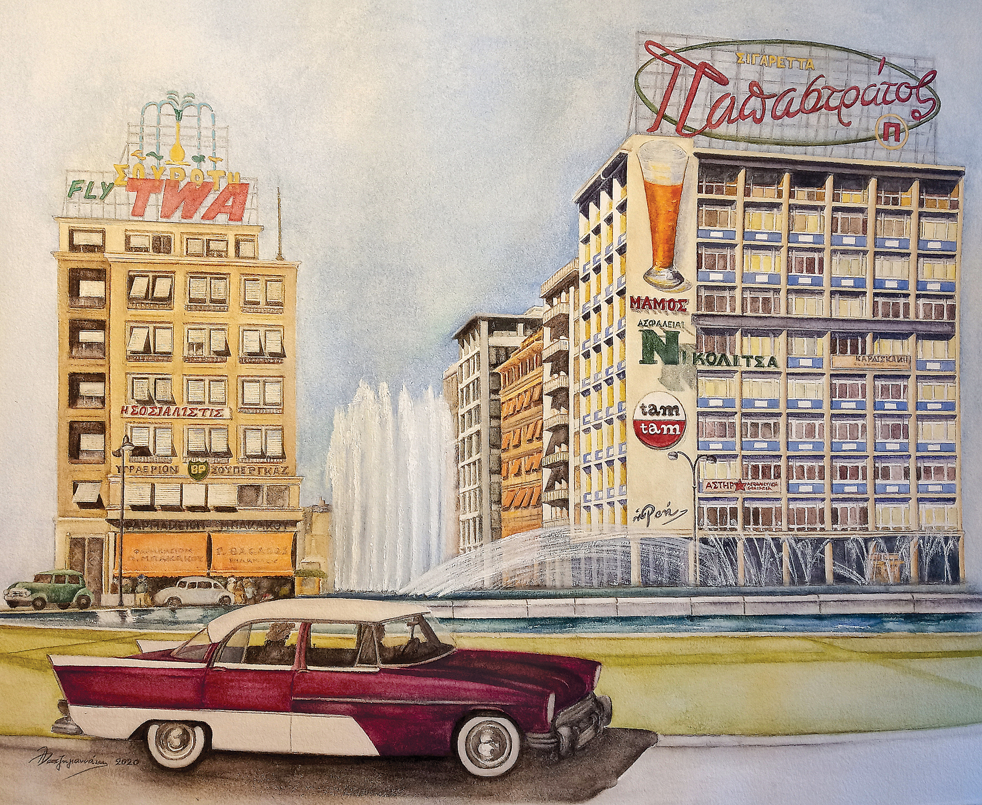 Το Συντριβάνι, Υδατογραφία σε χαρτί, 50x34 εκ, 2020