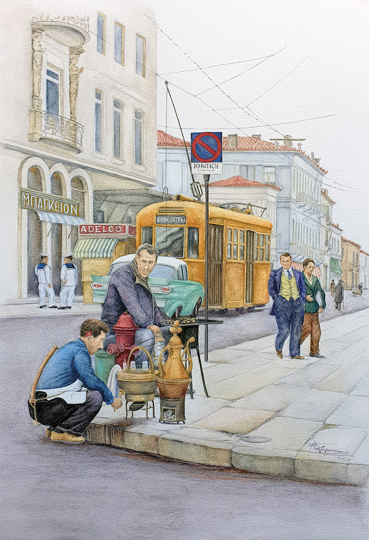 Οδός Αθηνάς, Υδατογραφία σε χαρτί, 31x44 εκ, 2020